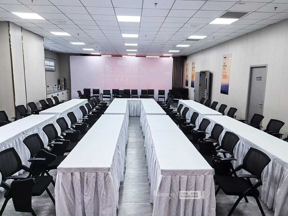 许昌桌椅沙发租赁凭借精准的物料搭配与细致的布场服务,以铺有白色桌布的长条桌、立式展架为核心物料,为交流会打造了庄重得体、动线流畅的商务空间,成为活动圆满落地的坚实后盾。
