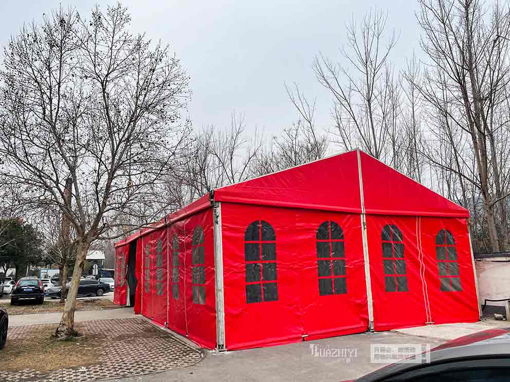焦作篷房租赁选用高品质红色篷布,色泽鲜亮饱满、不易褪色,热烈的红色既彰显了喜庆活力,又能快速融入演出场地的整体氛围,为忙碌的演出人员营造出温馨愉悦的用餐环境。篷房采用高强度铝合金框架,经过精密焊接与防腐处理,结构扎实稳固,抗风防雨性能优异,可有效遮挡烈日、抵御突发风雨,为演出人员隔绝户外恶劣天气,打造安全、舒适的用餐避风港,适配各类户外、临时演出的用餐需求。