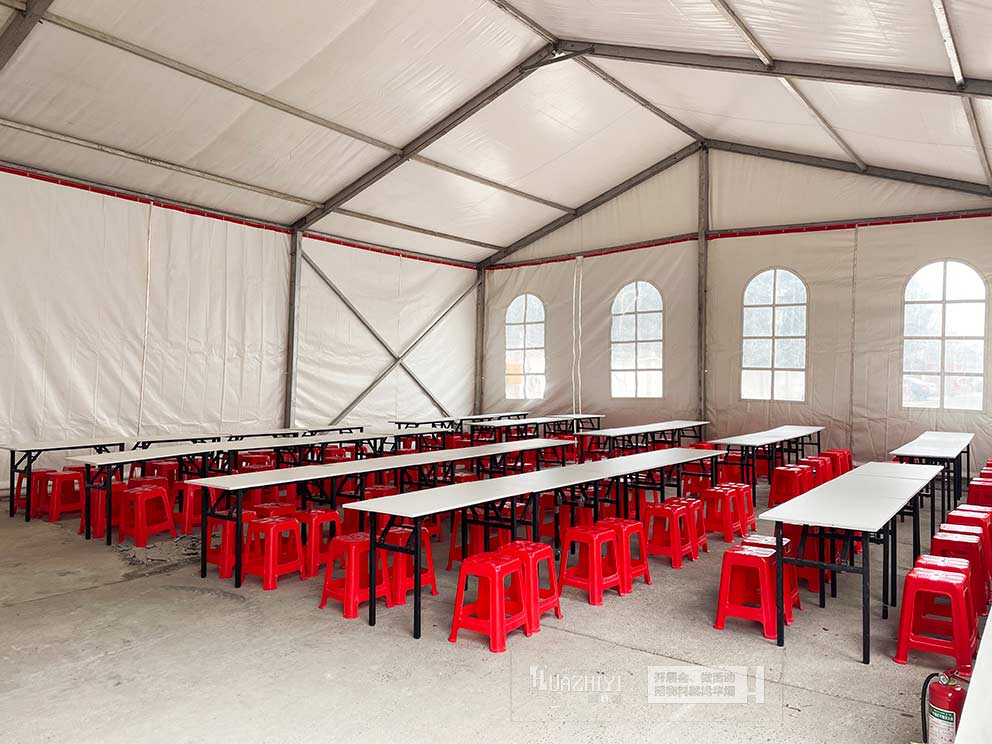 一场精彩演出的圆满呈现,离不开幕后全方位的贴心保障。焦作篷房租赁为演出人员搭建红色用餐篷房,配套摆放长条桌与红色方凳,以喜庆实用的布局、稳固优质的品质,为演出人员打造专属用餐空间,用细节服务助力演出顺利开展。