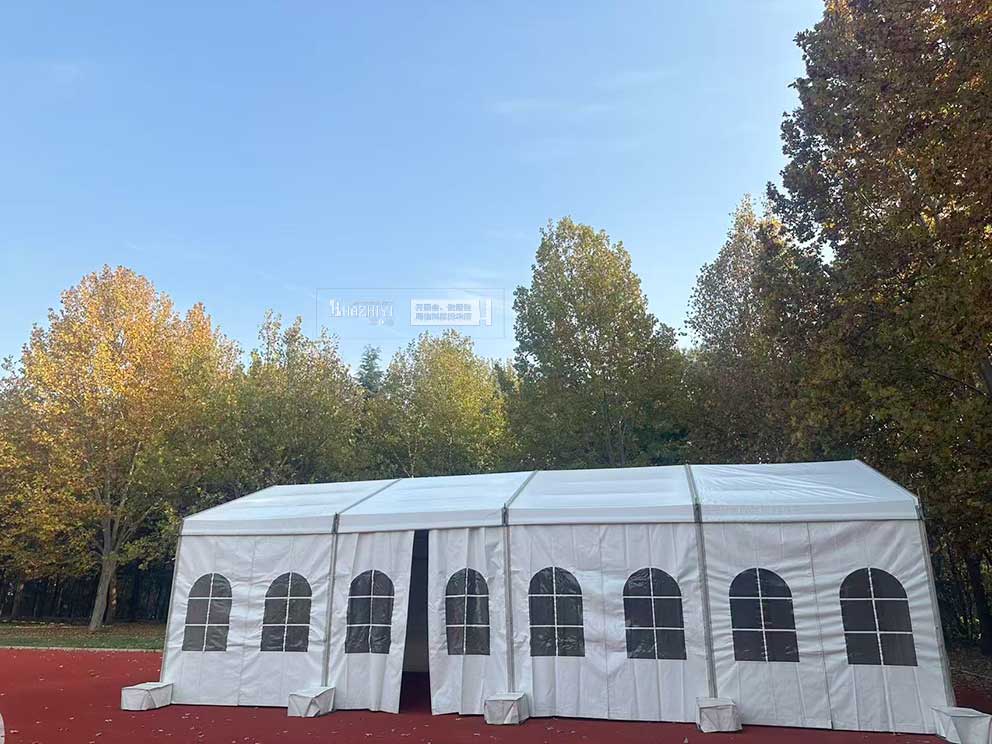 临汾长治篷房出租为竞赛搭建的白色人字形篷房,是场地的核心功能区。篷房选用高强度铝合金框架与高密度PVC篷布,既具备优良的防风防雨性能,又能保证内部空间的开阔通透。无立柱设计让篷房内利用率提升至90%以上。