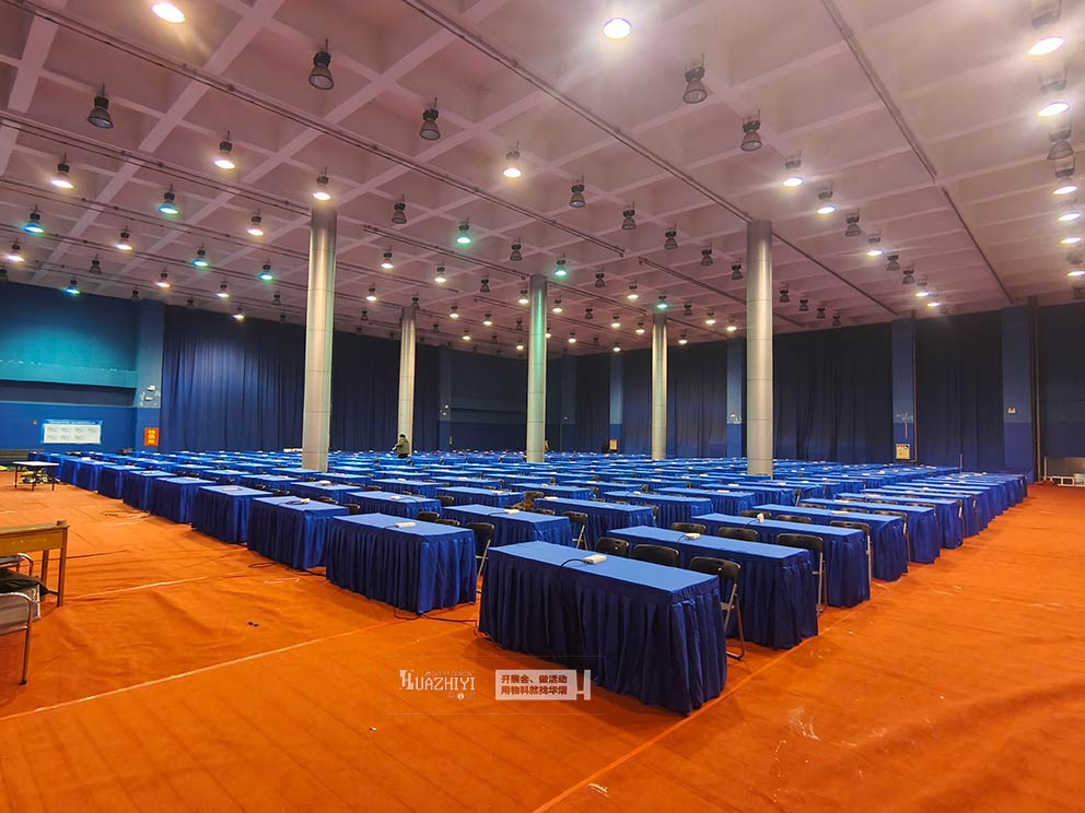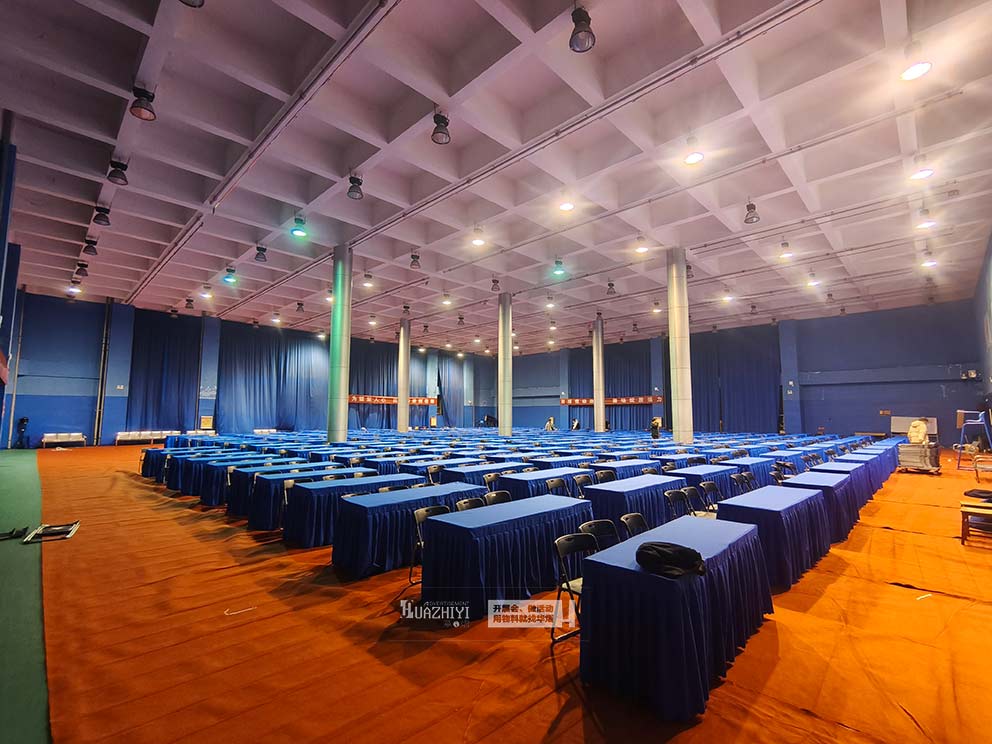 一场兼具秩序感与活力的活动,离不开贴合场景的场地布置。开封桌椅租赁精准把握高校活动特性,以铺着蓝色桌布的长条桌搭配黑色折叠椅为核心物料,为平顶山城建学院打造了功能实用、视觉协调的活动空间,让校园活动在舒适有序的氛围中精彩展开。