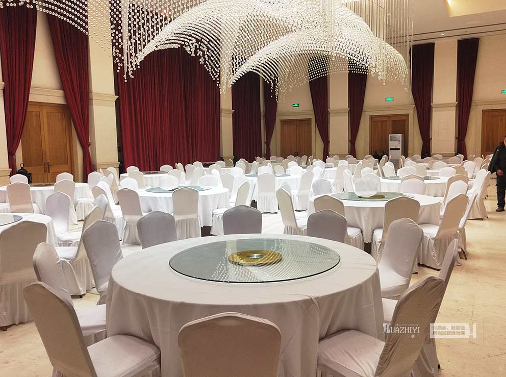开封桌椅出租为九紫星畔产业园选用的大圆桌,是空间功能的核心载体。桌面采用实木基材搭配钢化玻璃转盘,玻璃转盘边缘经过圆弧打磨处理,既保证使用安全,又增添通透质感,方便参会者轻松取用餐食或交流物料;桌面铺设纯白色桌布,桌布材质选用防污易清洁的聚酯纤维,洁白平整的外观与产业园现代简约的装修风格高度契合,同时能提升空间的明亮度与整洁感。大圆桌直径根据场地需求灵活选择,可容纳8-12人围坐,既适合小型商务洽谈,也能满足团队会议需求。
