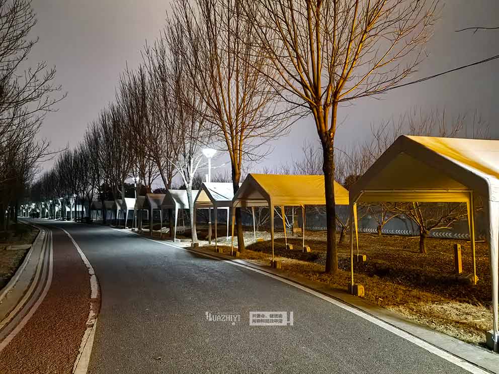 米白色网红帐篷是本次庙会的视觉亮点。纯净柔和的色调,与永宁湖的湖光夜色、千灯美景相得益彰,简约大气又极具氛围感,随手一拍就是朋友圈爆款。帐篷采用优质篷布与稳固框架,安全耐用、防风防晒,既能满足商户经营、游客休憩需求,又成为庙会里辨识度极高的打卡地标。 从场地勘测、方案设计到现场搭建、细节调整,周口篷房租赁团队全程高效执行。